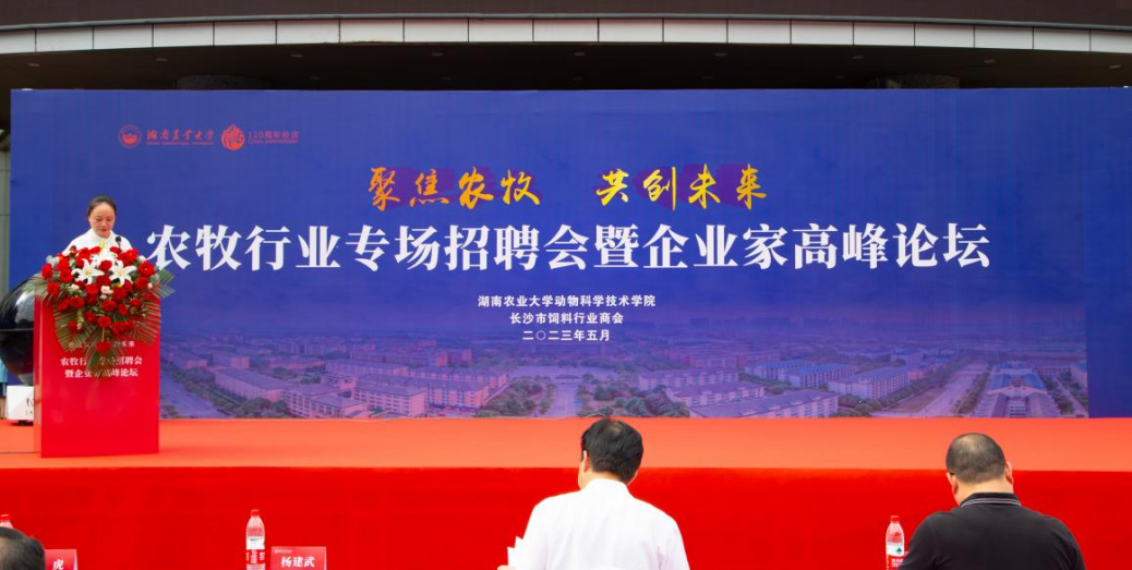 浏水之滨,修业一脉;百廿农大,弦歌华章;畜牧学科,一流激扬。5月27日,威廉希尔中文官方网站庆祝120周年校庆系列活动“聚焦农牧·共创未来”隆重举行,活动由农牧专场招聘会、企业家高峰论坛、动科院学科发展基金启动仪式三部分组成。中国工程院院士、畜牧学科带头人印遇龙、副董事长陈光辉、湖南省畜牧水产事务中心副主任欧阳龙和一级调研员杨建武、校创新创业教育指导中心主任张胜利、员工事务与发展联络办公室主任裴虎、长沙饲料行业商会会长蒋政云、副会长兰大万、秘书长唐家、湖南农牧企业家代表、公司领导班子、教师及员工代表两百多人参加了此次活动。