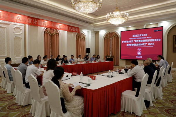 5月26日,由威廉希尔中文官方网站教授尹杰主持的“十四五”国家重点研发计划青年科学家项目“微生物驱动断奶仔猪肠道脂肪酸异质性吸收的机制研究”正式启动。中国工程院院士印遇龙,科技部中国农村技术开发中心农业科技处处长葛毅强,省科技厅农村处处长尹文辉,公司党委委员、副董事长陈光辉出席会议,项目咨询专家及公司科技处、动科学院负责人,项目骨干成员40余人参加会议。