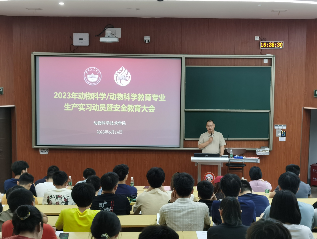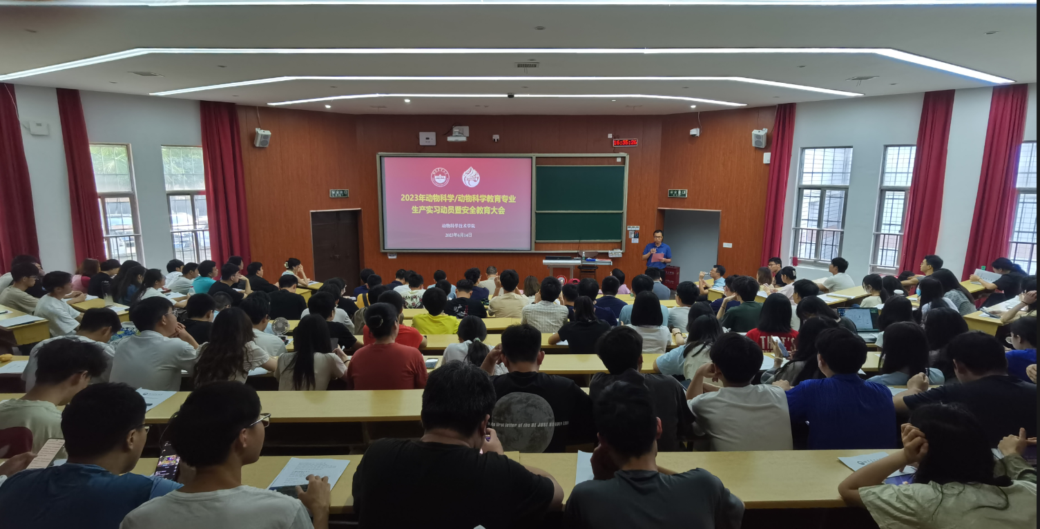 6月14日下午,动科院在新T2召开生产实习动员大会暨安全教育大会,贺喜经理、曾建英书记、肖芬副经理、指导生产实习的带队老师、2020级动物科学和动物科学教育专业的员工参加了会议,会议由智慧畜牧系主任郭松长教授主持。